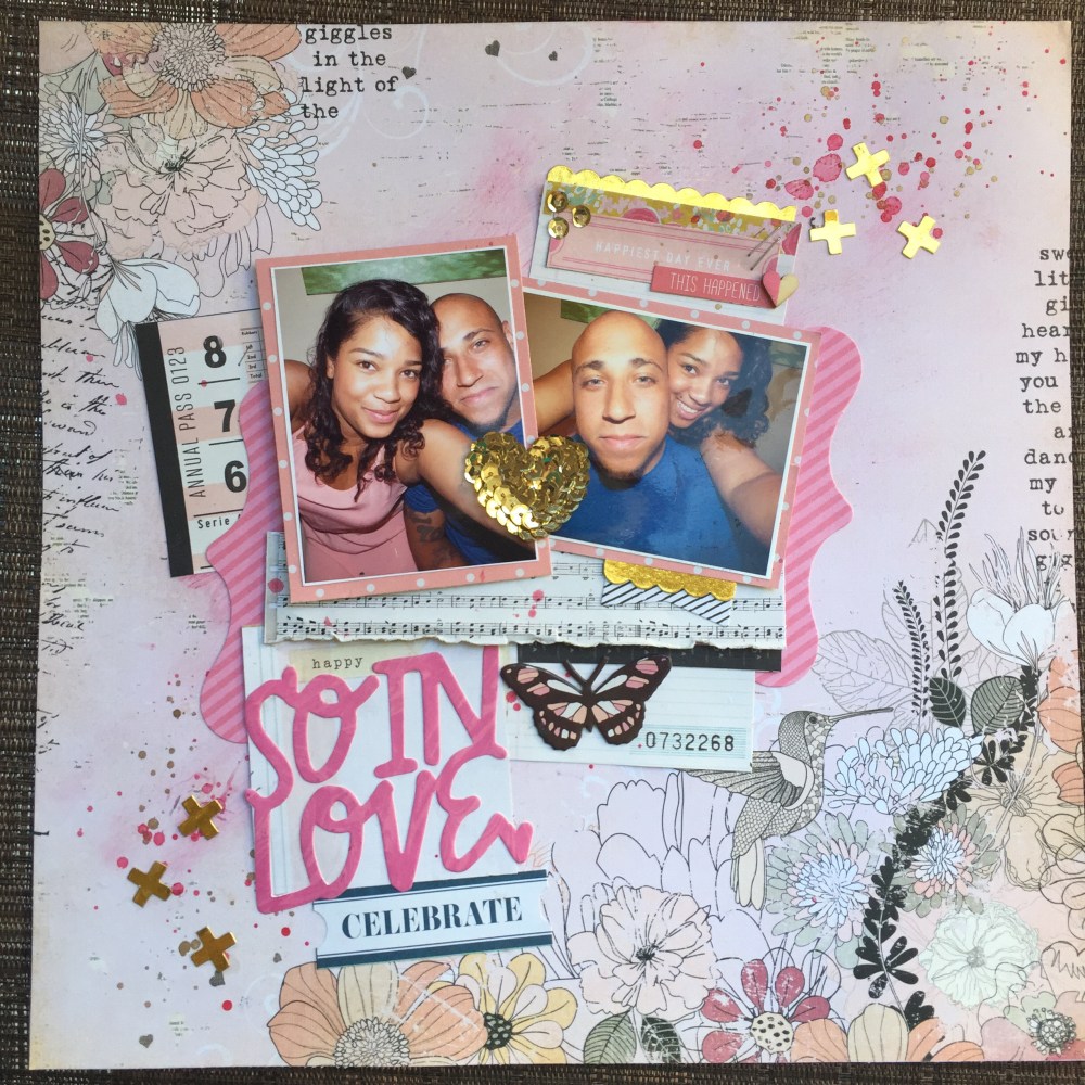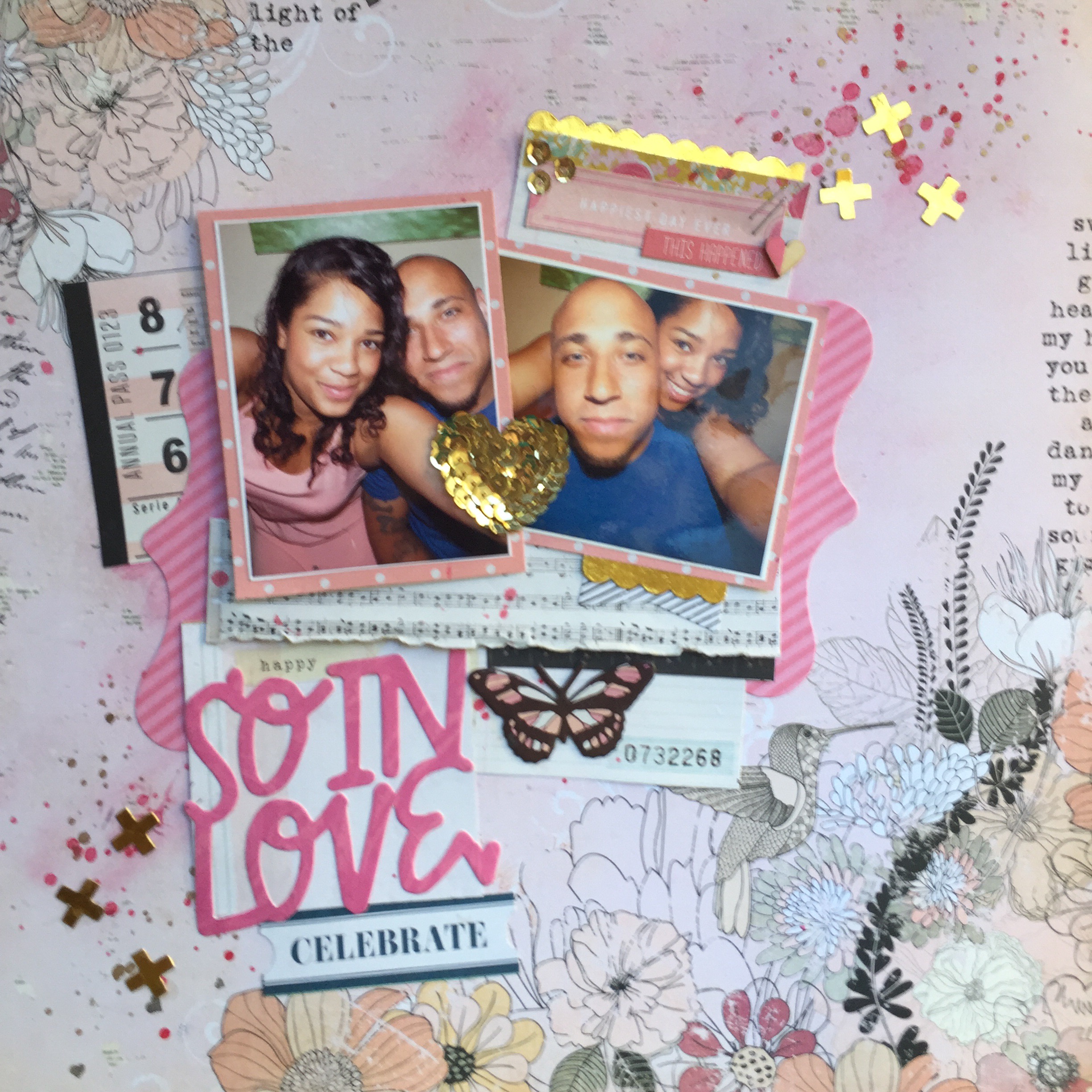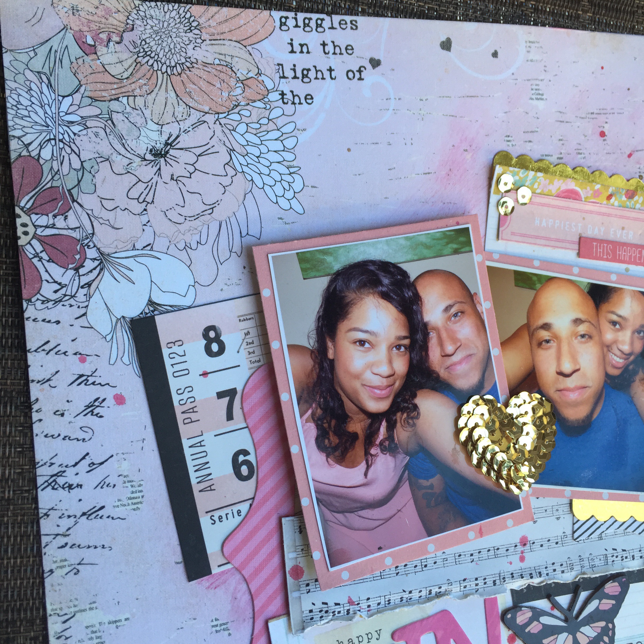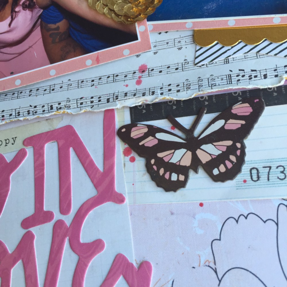 Even thou the paper is really busy I wanted to add more, more and more . For this layout, I did a lot of layering with watercolors, Gelatos, and Paper.. We can’t be scared of layering , Layering is fun- if you are not comfortable doing this, the best way that I found that works for me were going by the colors or shapes. I suggest that you start with lighter colors too ,so you don’t feel like you are doing too much . As you can see in this layout I used the colors that were already on the page like Light pinks, Peach, and shades of dark pink. It might look like a pile of nothing at the beginning but at the end, it looks cute.