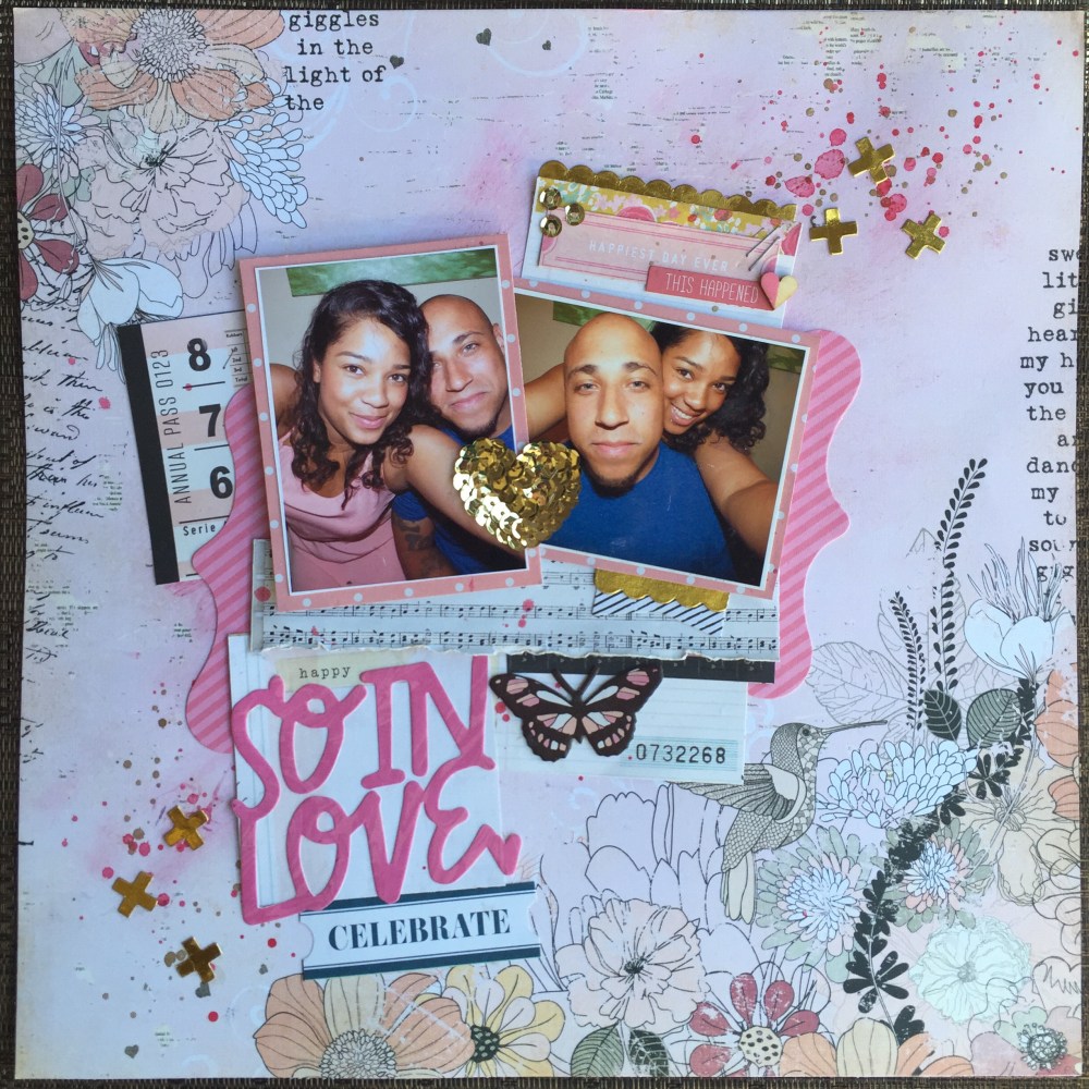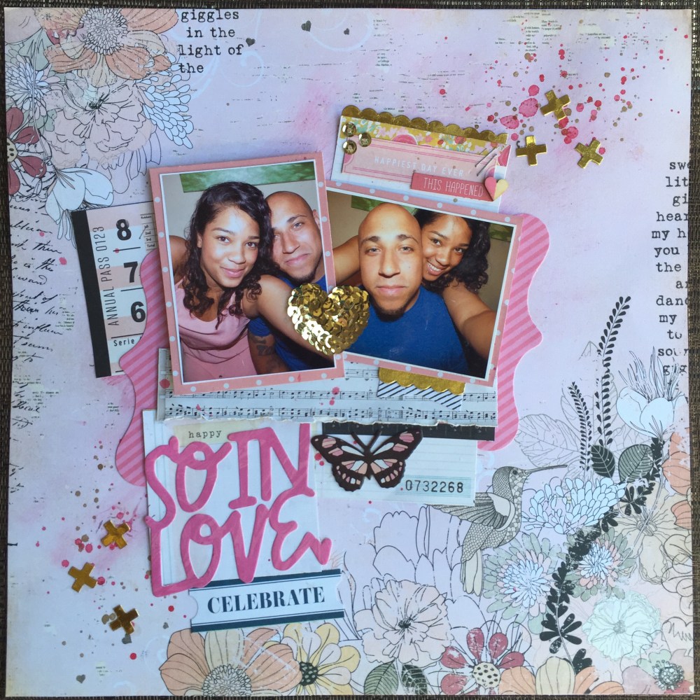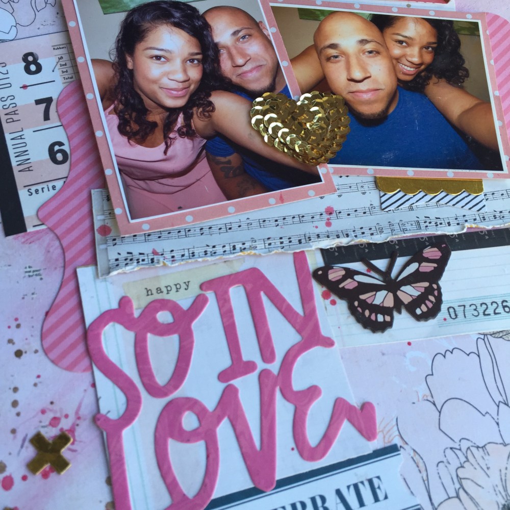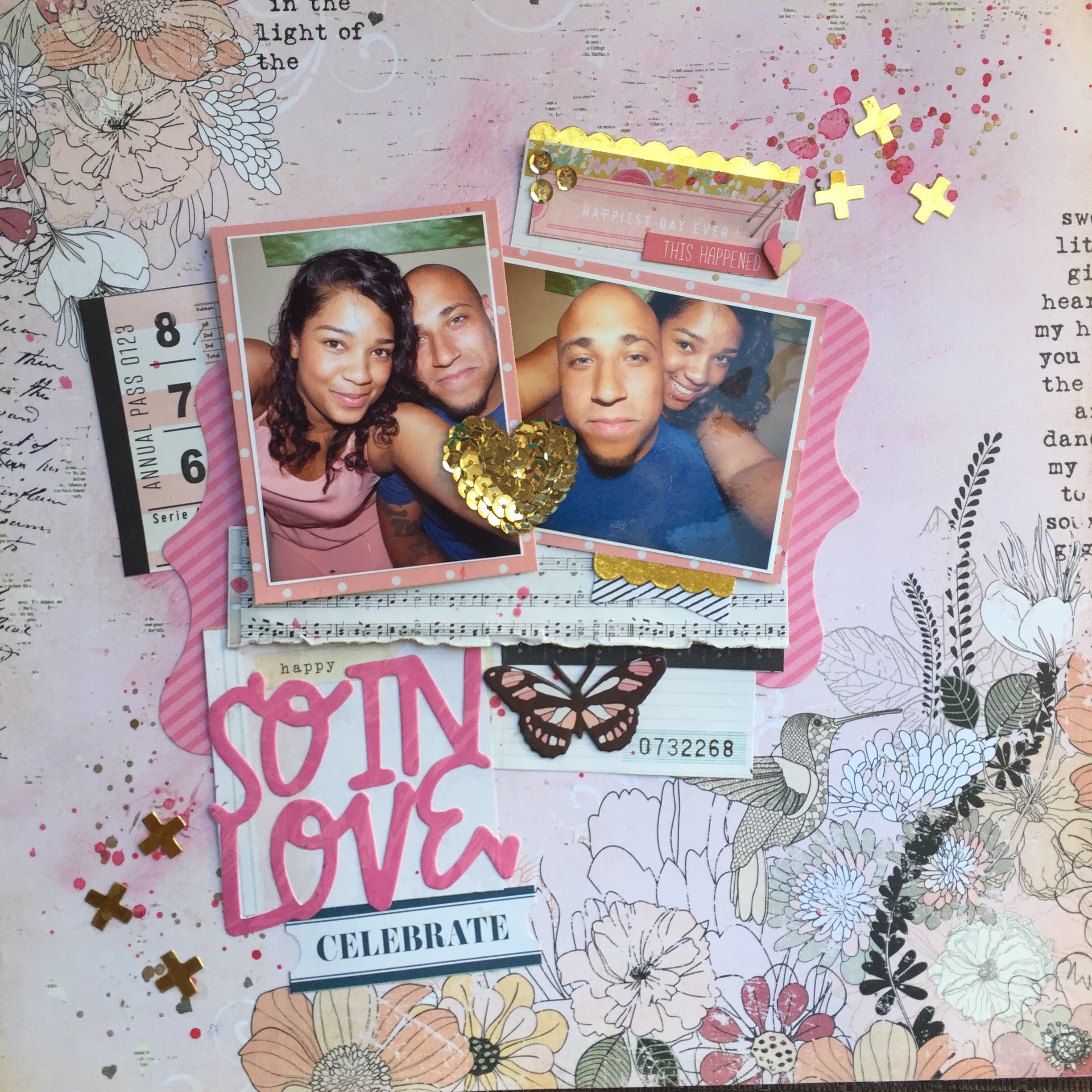 Even thou the paper is really busy I wanted to add more, more and more . For this layout, I did a lot of layering with watercolors, Gelatos, and Paper.. We can’t be scared of layering , Layering is fun- if you are not comfortable doing this, the best way that I found that works for me were going by the colors or shapes. I suggest that you start with lighter colors too ,so you don’t feel like you are doing too much . As you can see in this layout I used the colors that were already on the page like Light pinks, Peach, and shades of dark pink. It might look like a pile of nothing at the beginning but at the end, it looks cute.