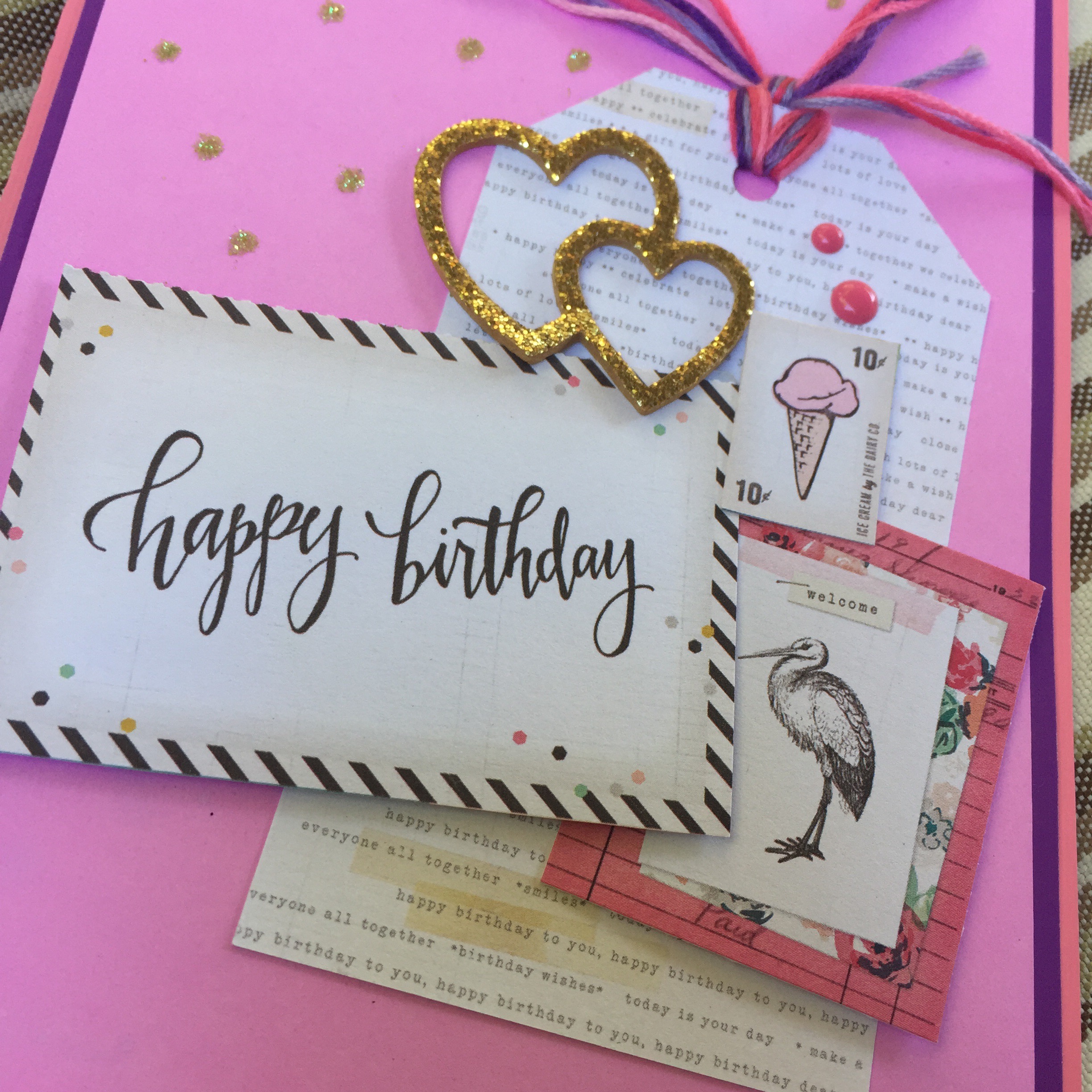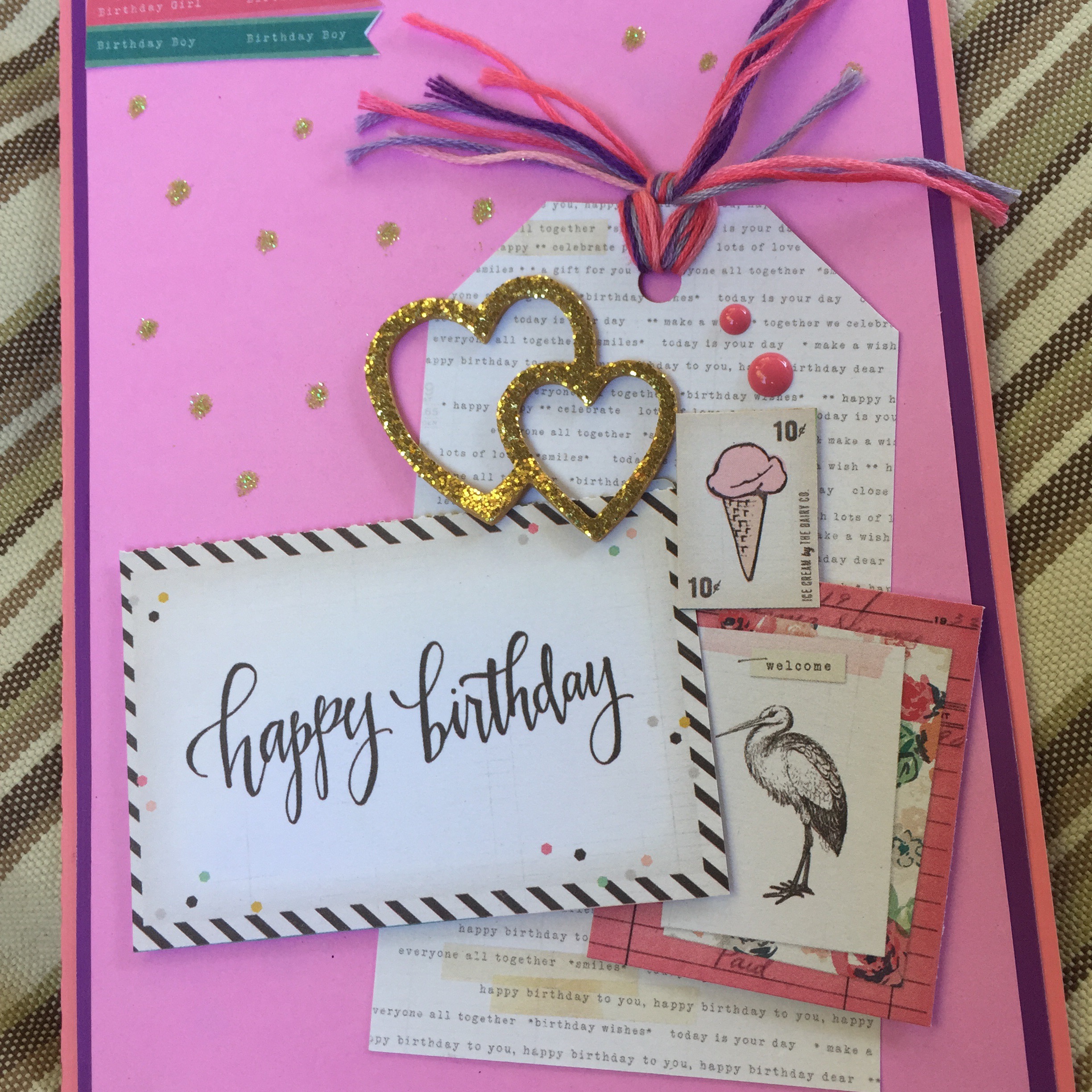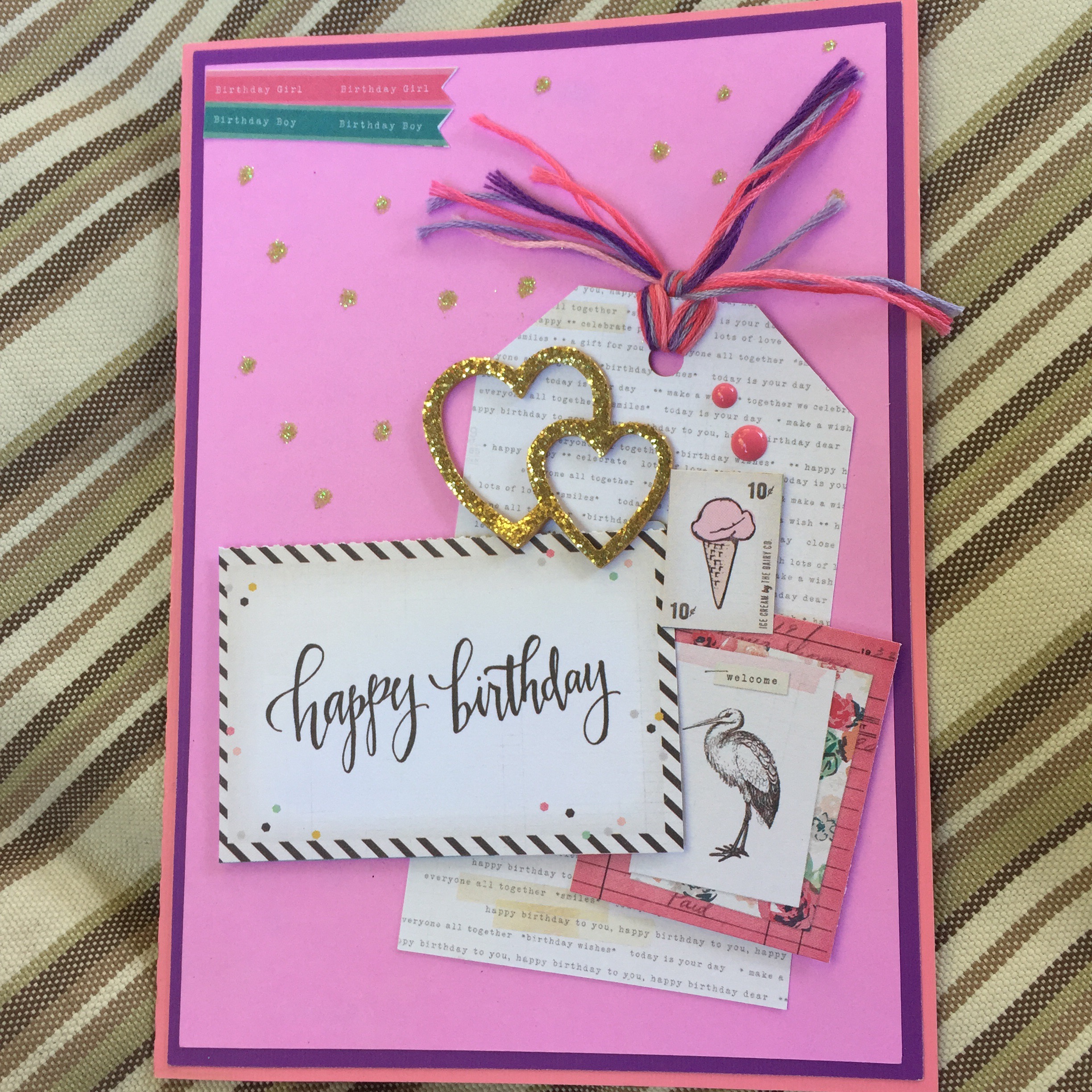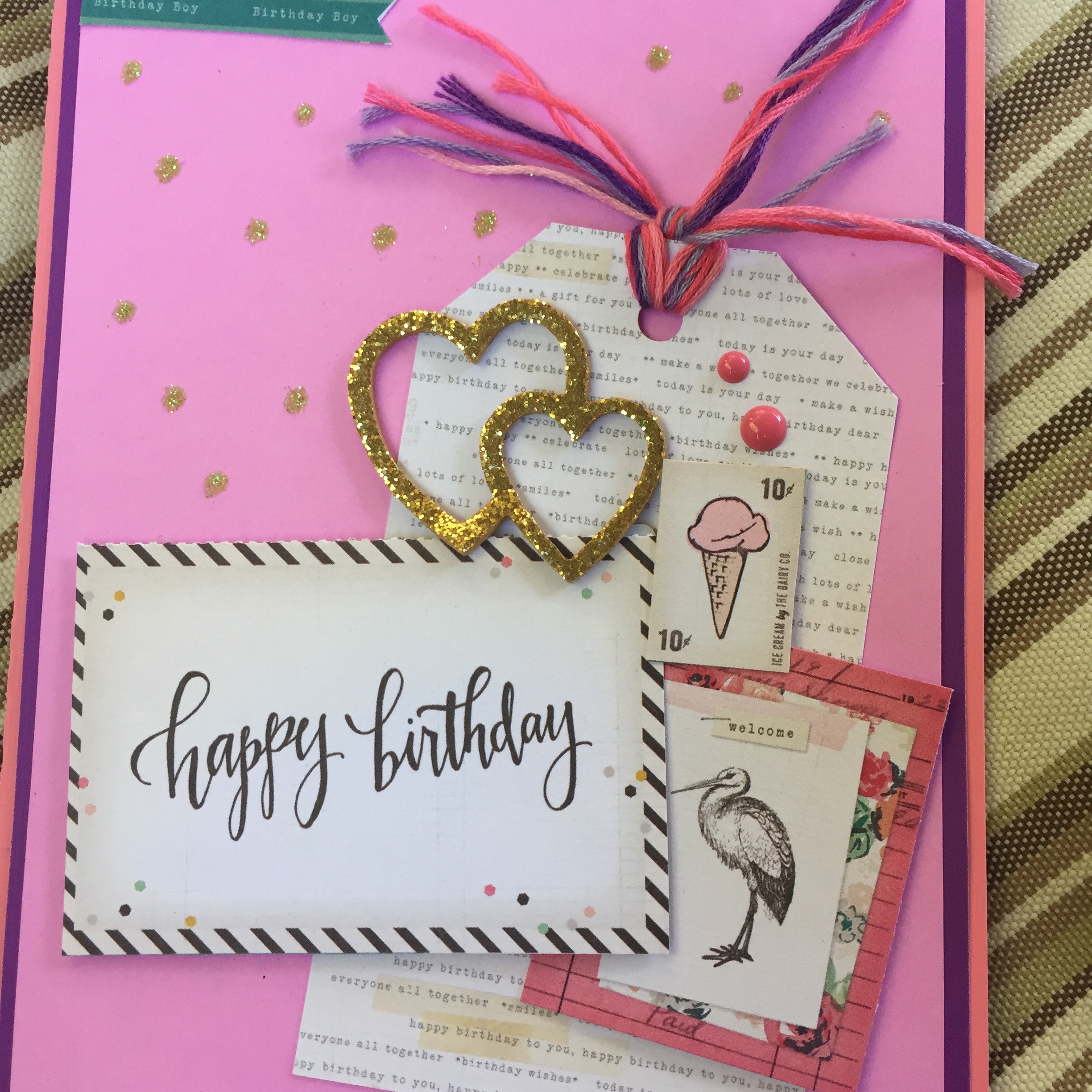 Sometimes all you need is pretty paper,glue, and scissors…. For this card, I used the Maggie Holmes paper pad Confetti by Crate Paper and glitter letter stickers by Thickers to create this cute card for a very special person .