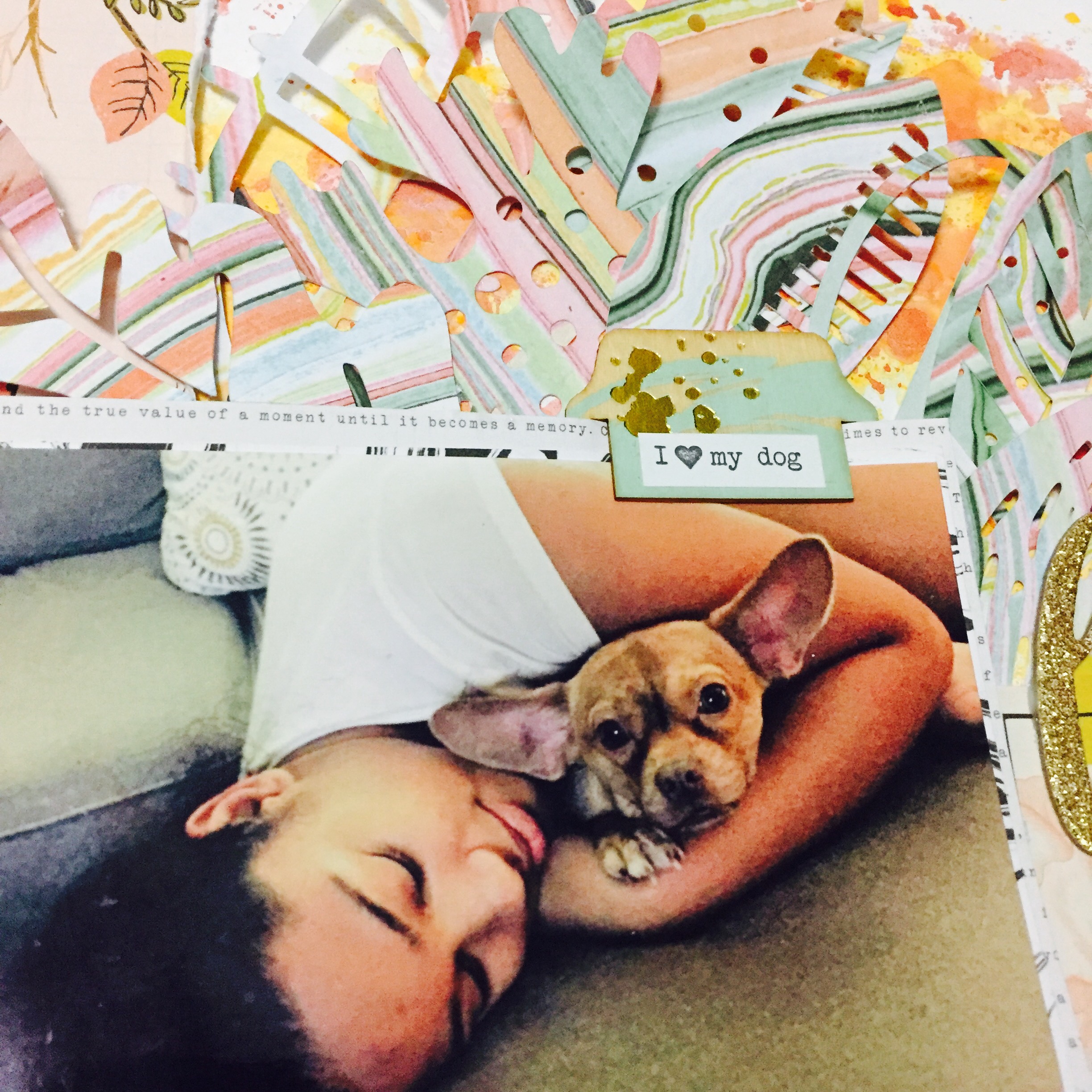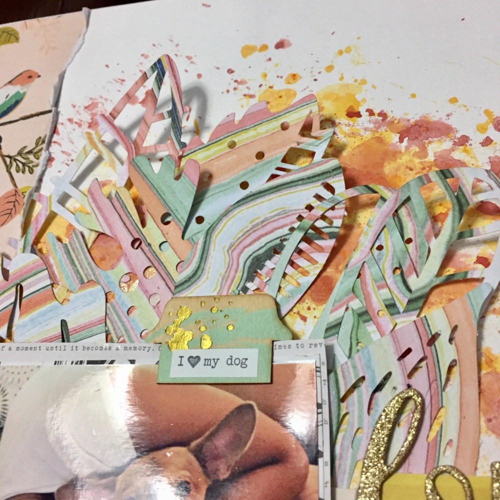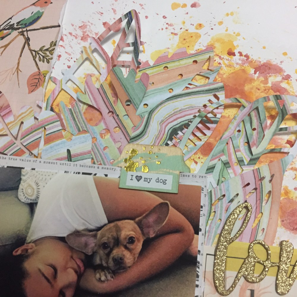 On the right of the photo,the tag that says “Best Day” is from one again Maggie Holmes die Cuts from the gather collection , I also added the “Loved” word from the American Crafts chipboard phrase stickers (maybe not the best title but I liked it at the moment) and another phrase from the studio calico phrase stickers (by the way how cute is that paper on the left with the birds and trees) ..