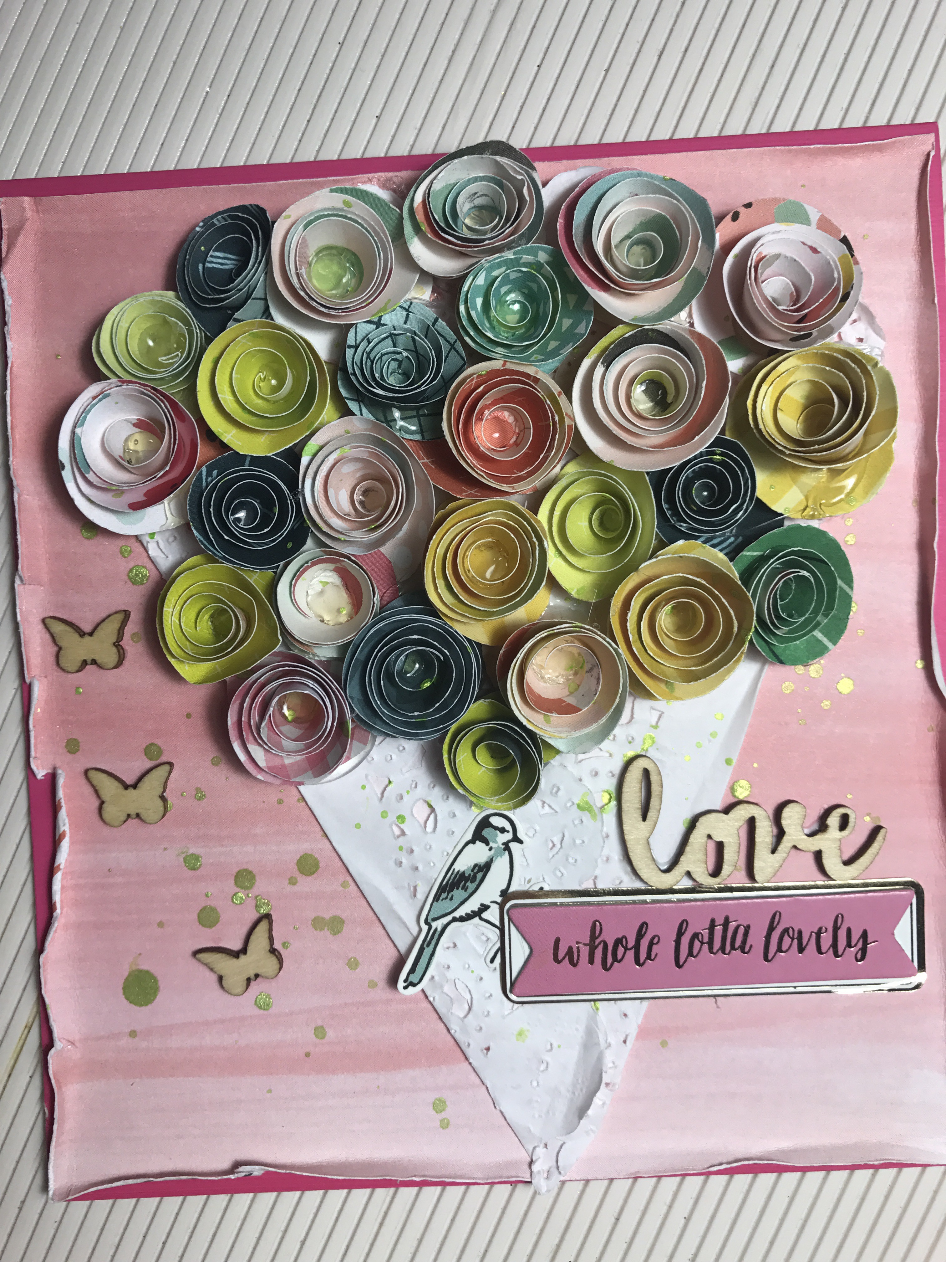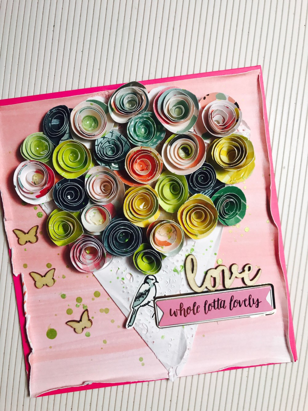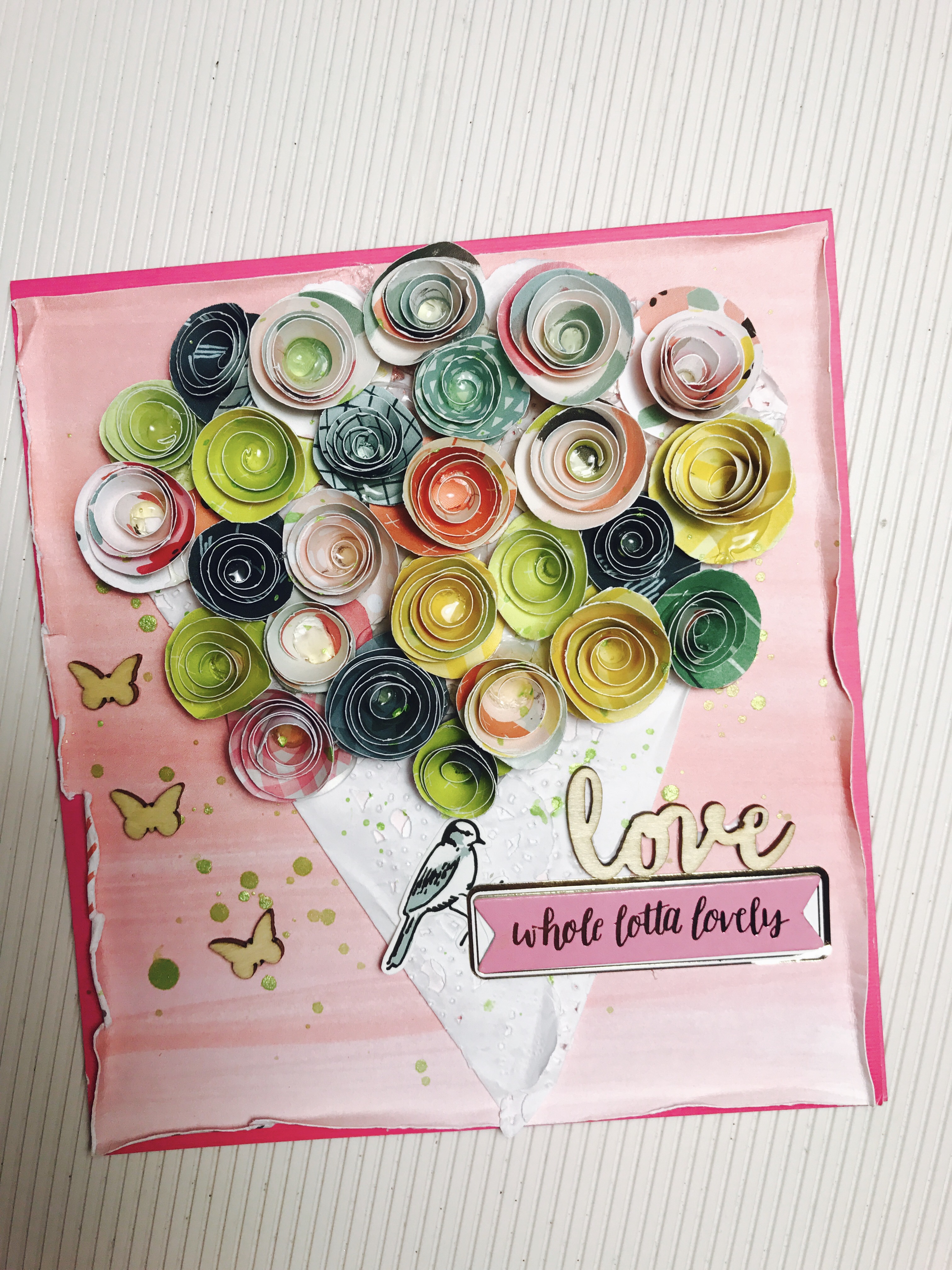 Happy Mothers Day to all the BEAUTIFUL mom’s out there. Look at this amazing bouquet card that I created using the Pink Paislee – Paige Evan 6 by 6 paper pad, a circle punch, and NETFLIX.