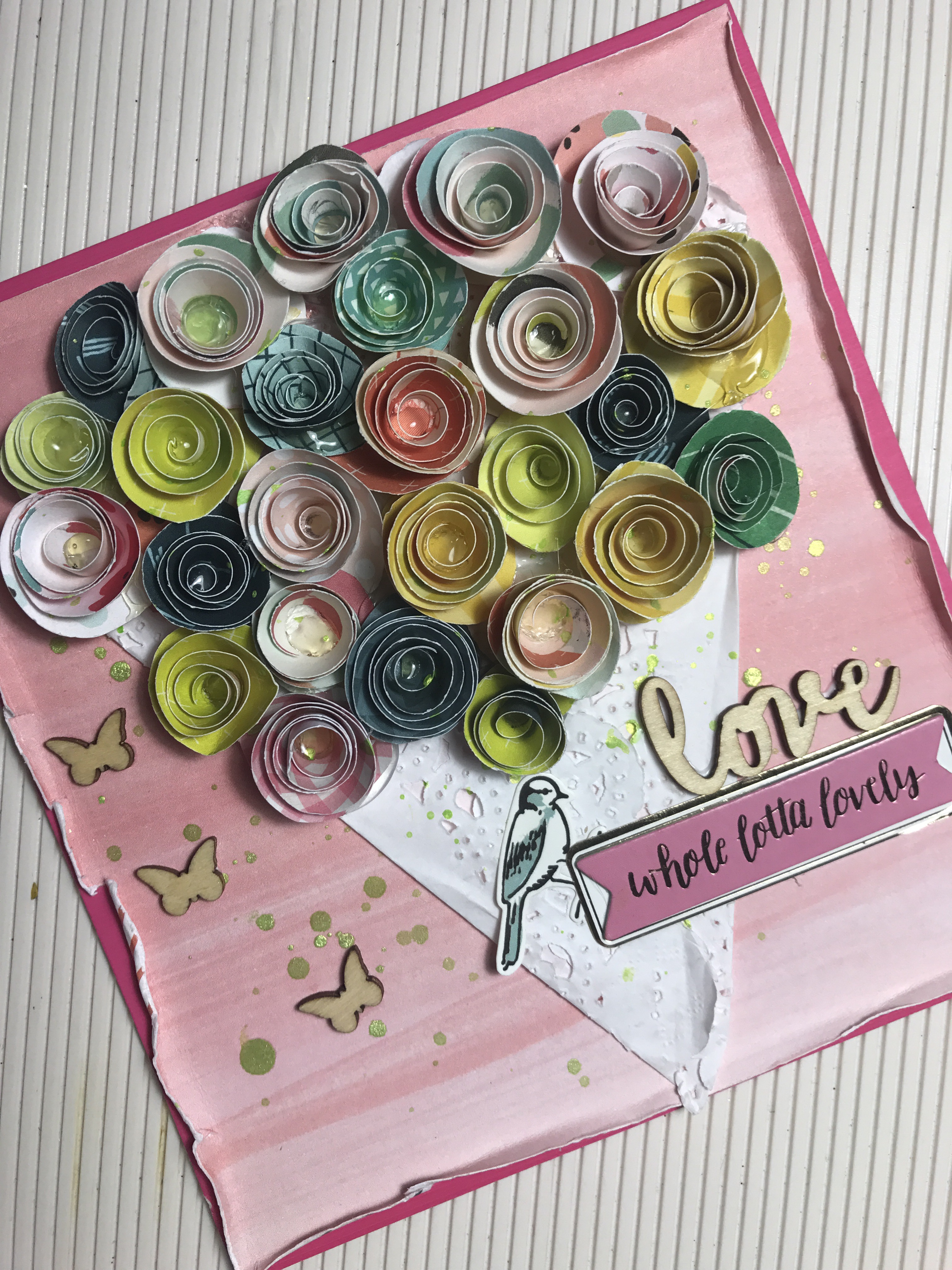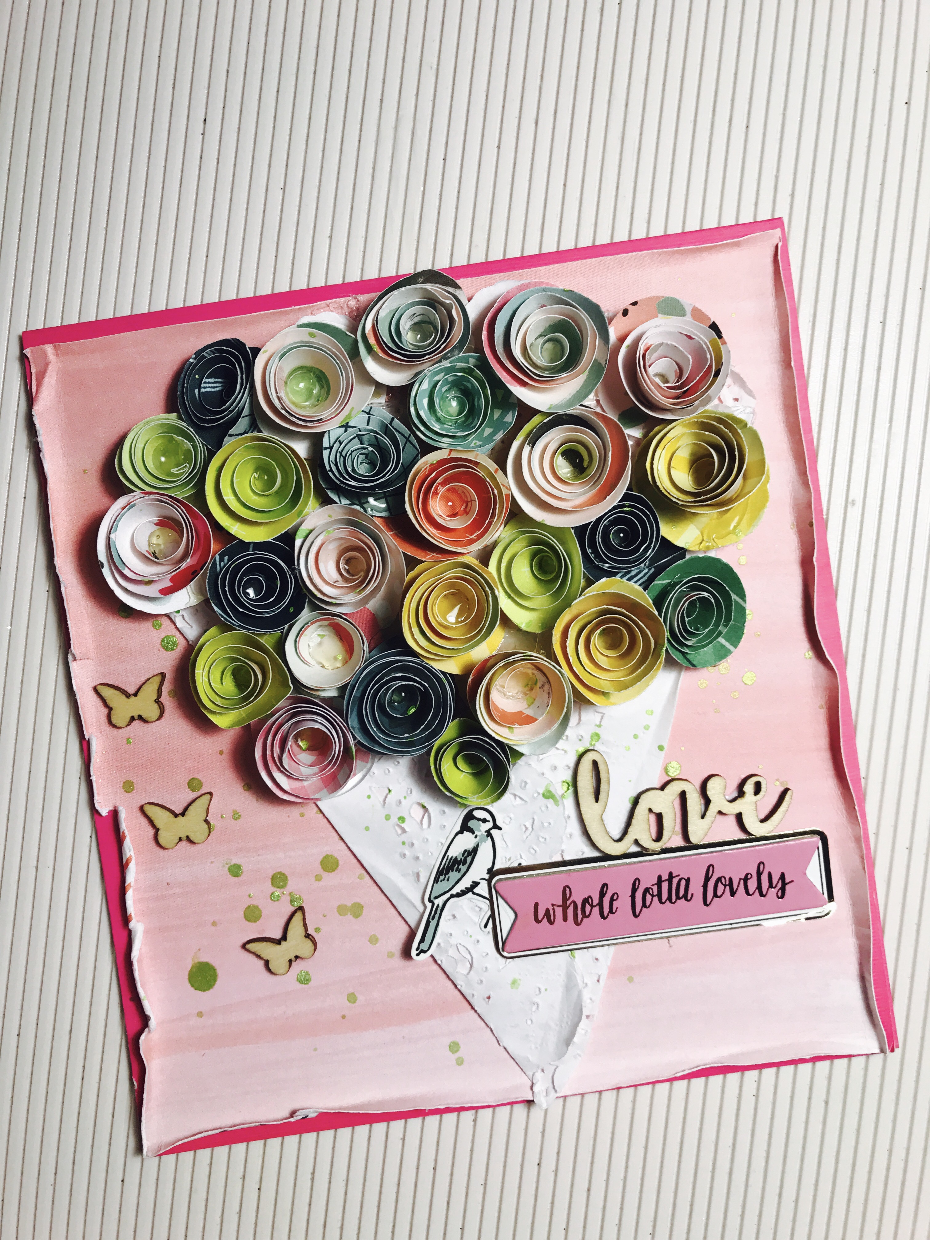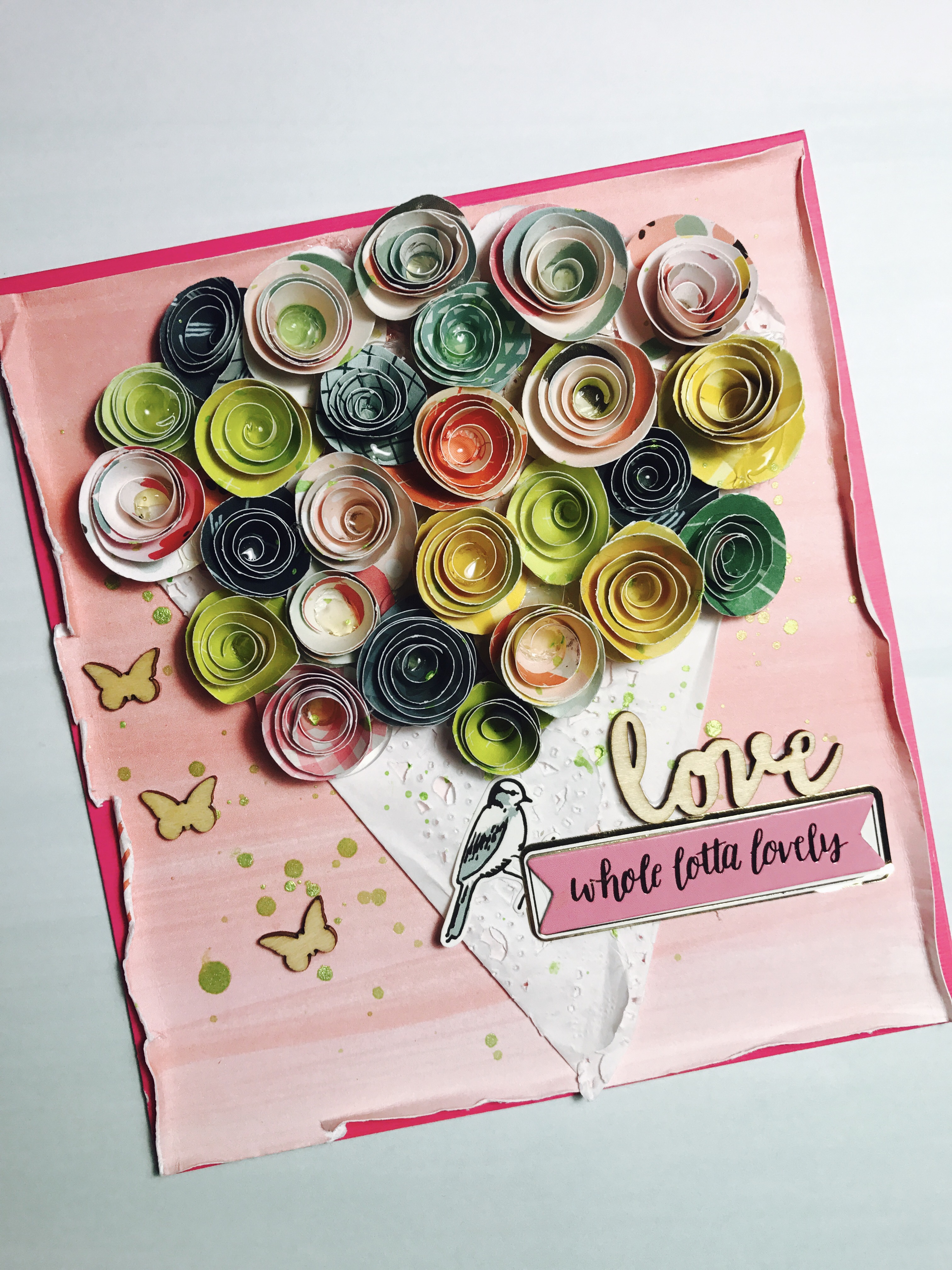 Happy Mothers Day to all the BEAUTIFUL mom’s out there. Look at this amazing bouquet card that I created using the Pink Paislee – Paige Evan 6 by 6 paper pad, a circle punch, and NETFLIX.