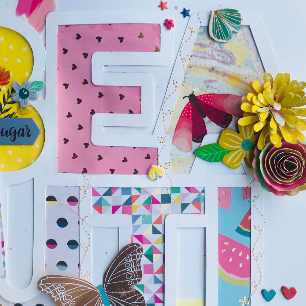 I backed all the letters with Pink Paislee – Paige Evans Collections (hahaha) Yes, I love everything Paige Evans creates from the day I found out about her – She inspires me a lot and why not used her cut files – They for sure make the page.