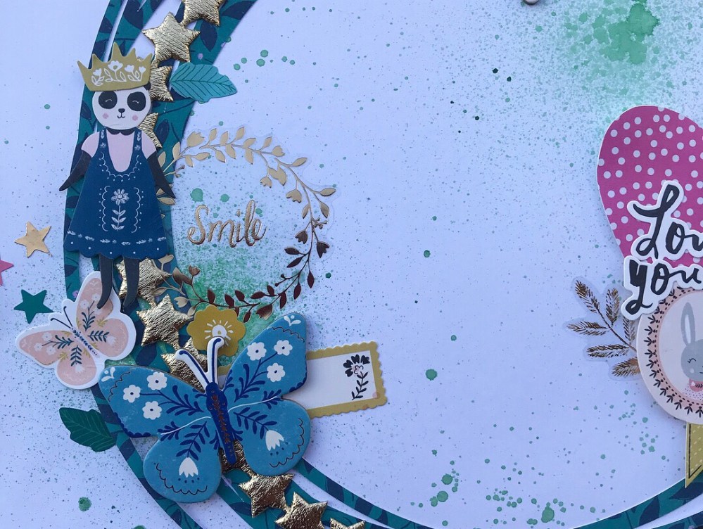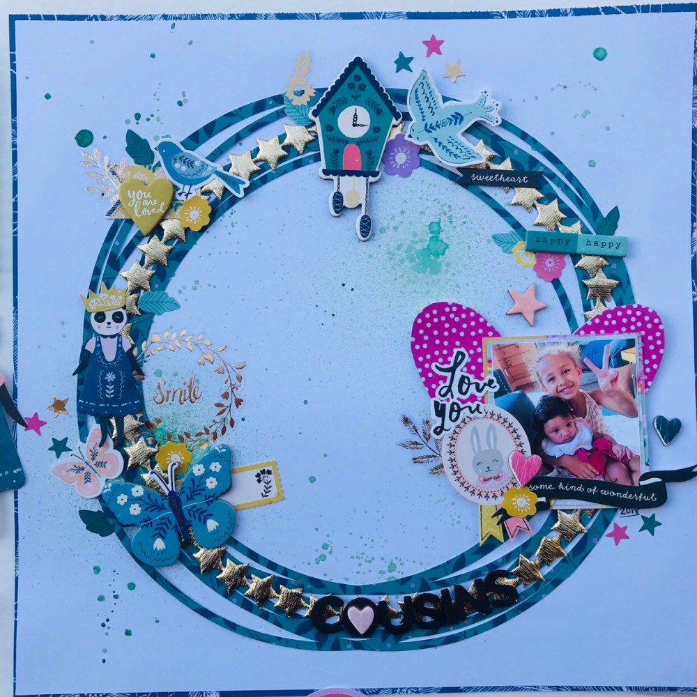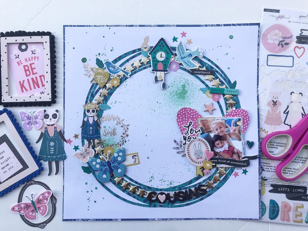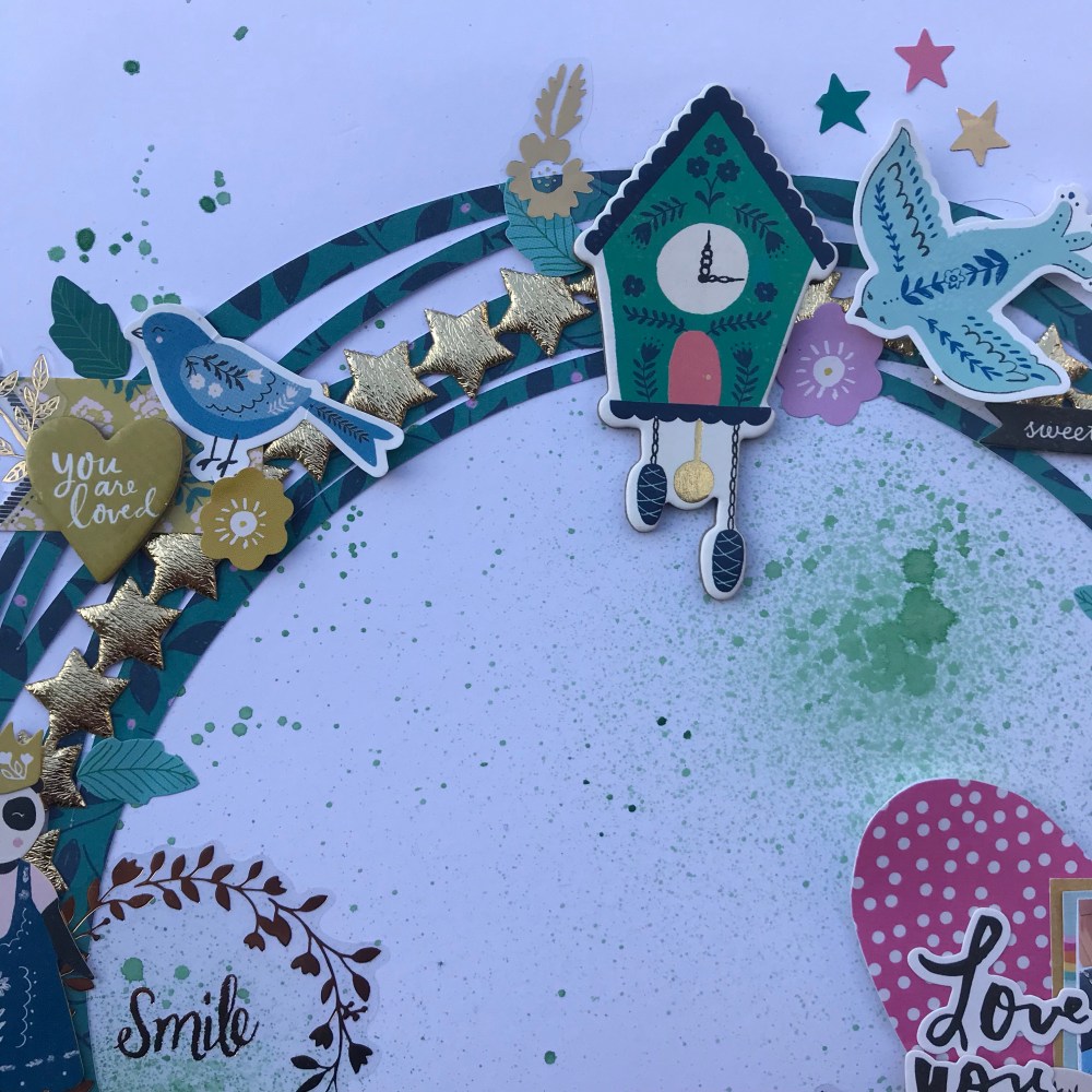 What do you think about my loaded circle wreath ?? I think it turned out beautiful. So much fun on one page . This is what happens when you are having too much fun . You get embellishments cray cray . 😬