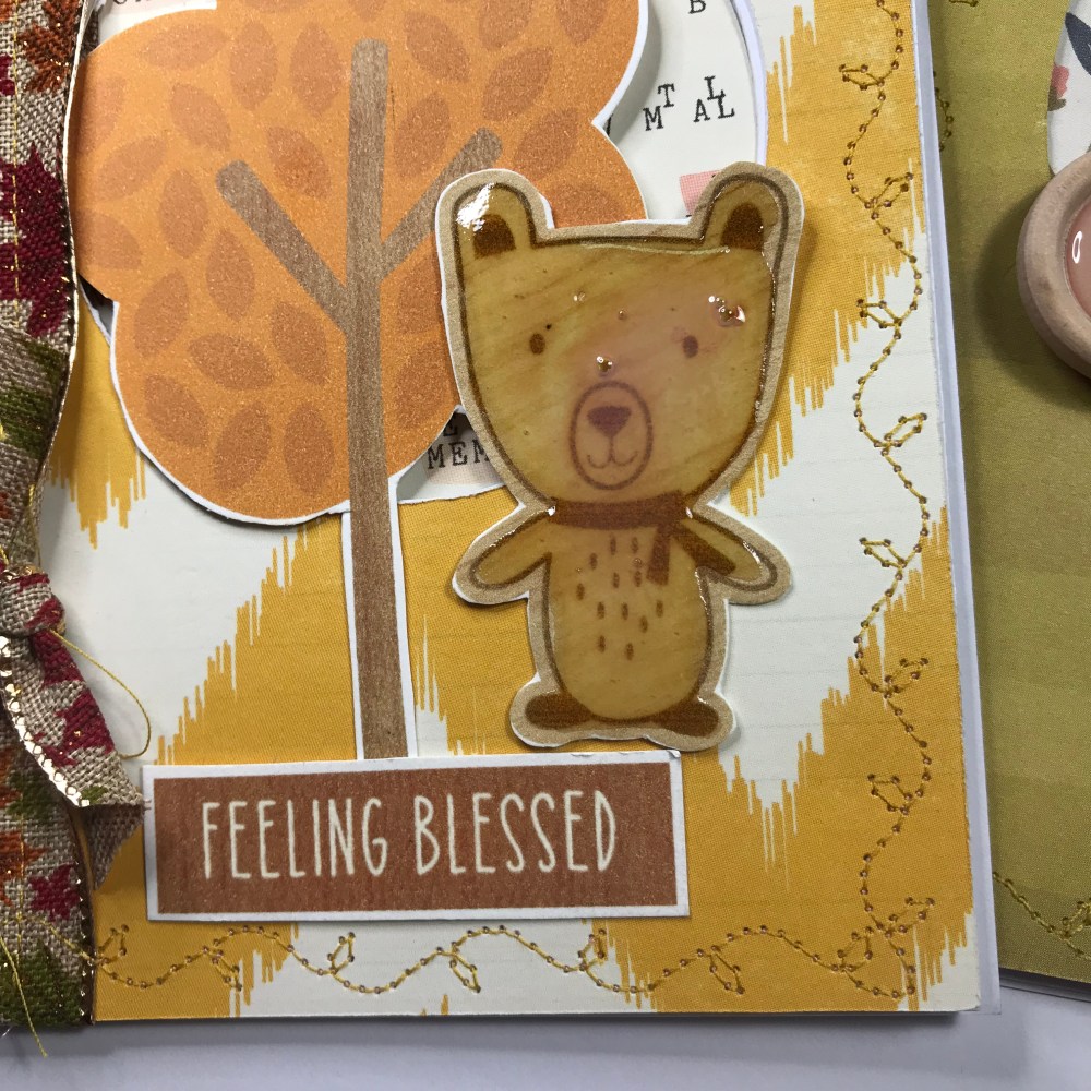 After, I added the base of the card to the cover with foam sheets and also added some foam adhesive squares behind the bits and pieces for dimension.