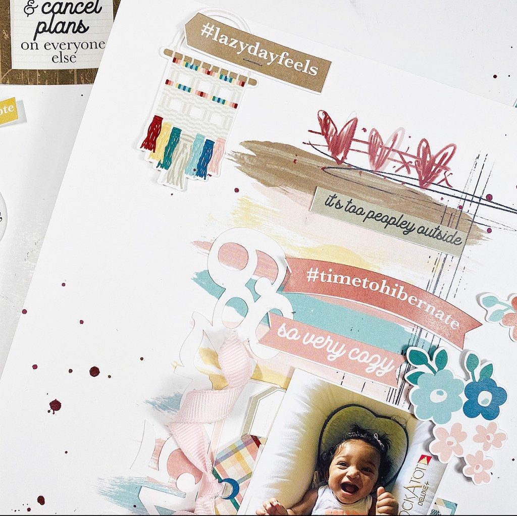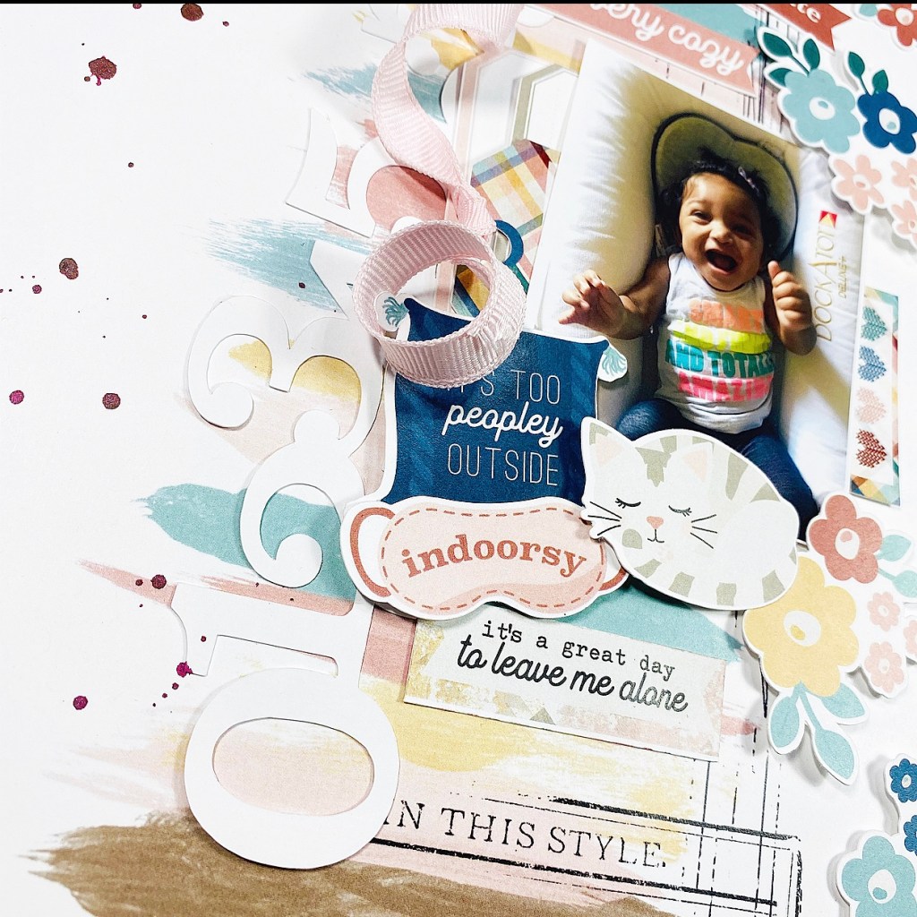 OMG! I’m completely in love with this #Indoorsy collection by @tracimreed. It’s so warm and full of fun phrases, flowers, little houses-ephemera pack is amazing! This 81/2 by 11 layout,the background was supposed to be a TN size but when I printed at Office Depot it printed in the middle of the 81/2 by 11 card stock- but I LOVE IT! What a beautiful mistake!