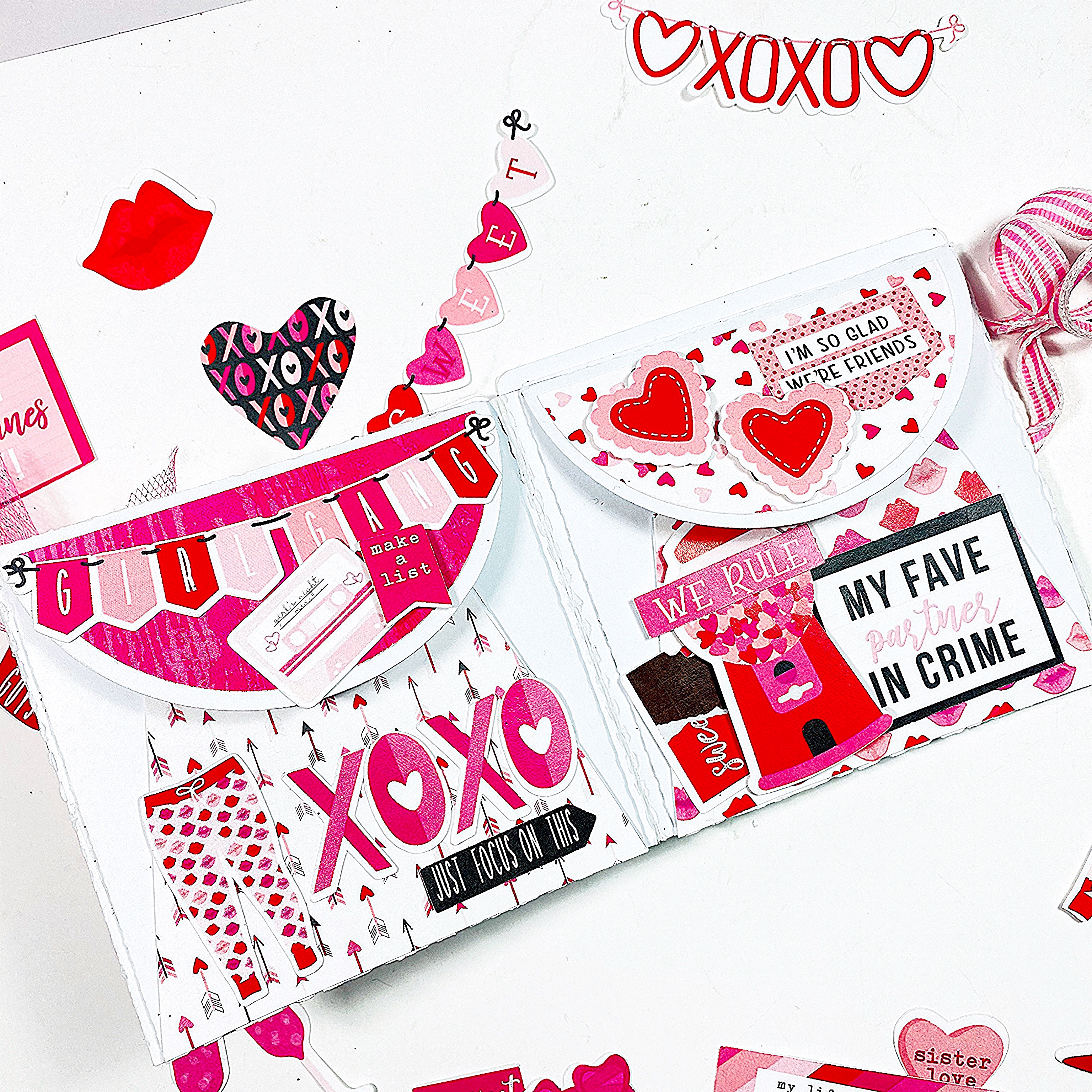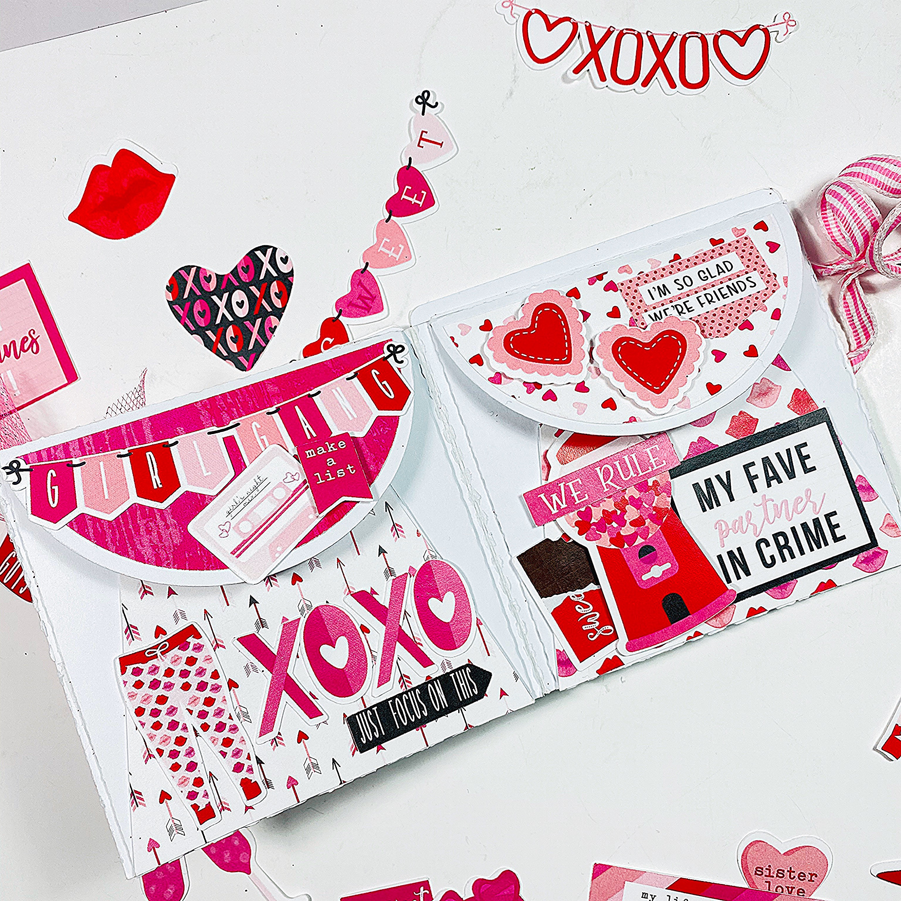 Look what I created using the the galentines collection by @tracimreed. This accordion envelope mini album is by @loriwhitlock. I love All the fun embellishments- perfect to celebrate FRIENDSHIP! The base was cut with a 110 pound Card-stock .