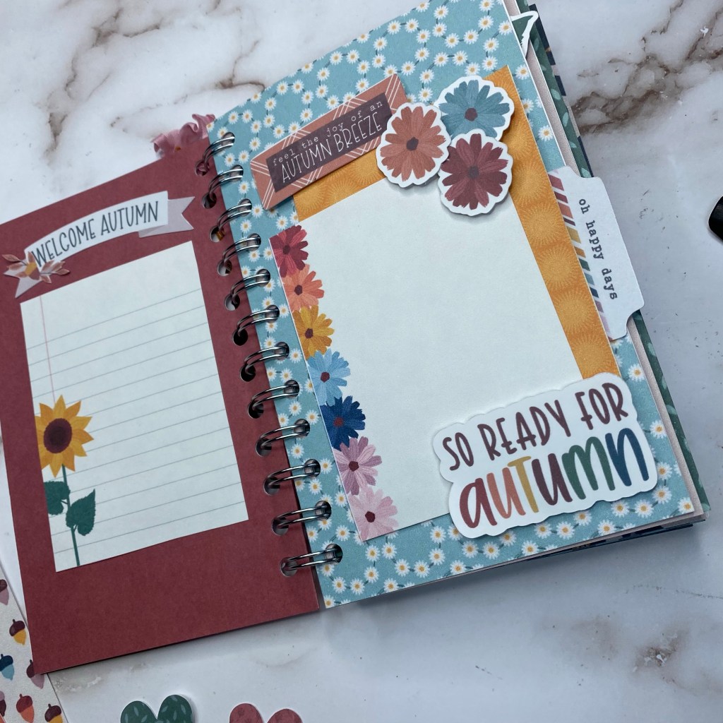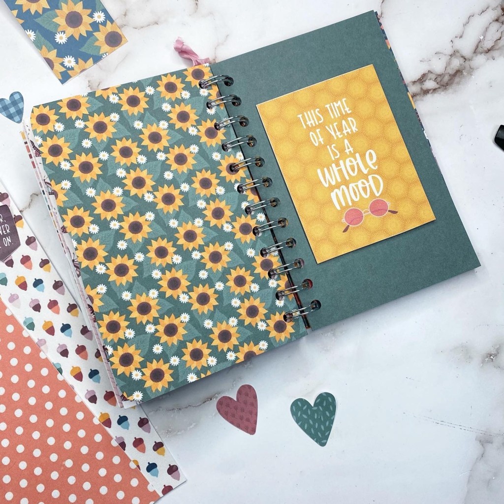 I am in love with the spiral -bound mini album I created using the printable collection from Traci Reed. It’s all ready for me to start added photo and memories!