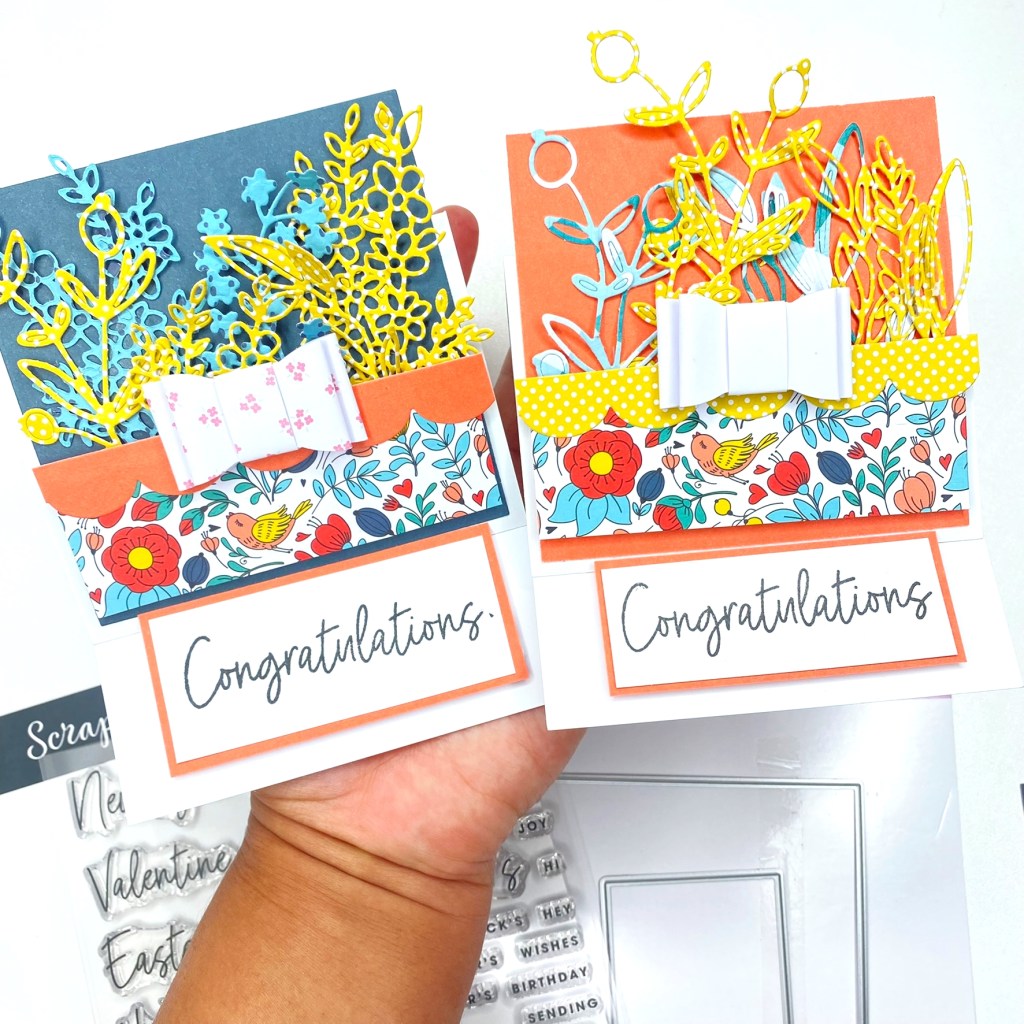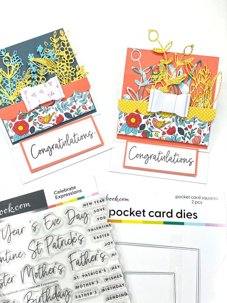 Inside the card, I stamp the congratulations from the Clear Photopolymer Stamp Set – Celebrate Expressions on white cardstock, then backed it with color cardstock, Added foam adhesive tape for dimension and wallah!
