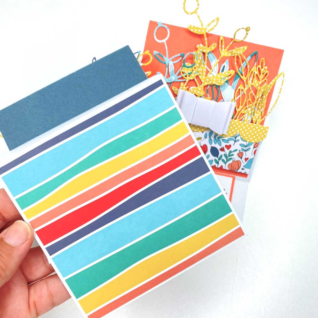 After, die-cut the 4×4 pocket card -when gluing the 4 by 4 card- add glue only up to the first scoreline -which is the front of the card, leaving the 1 1/4 blank!