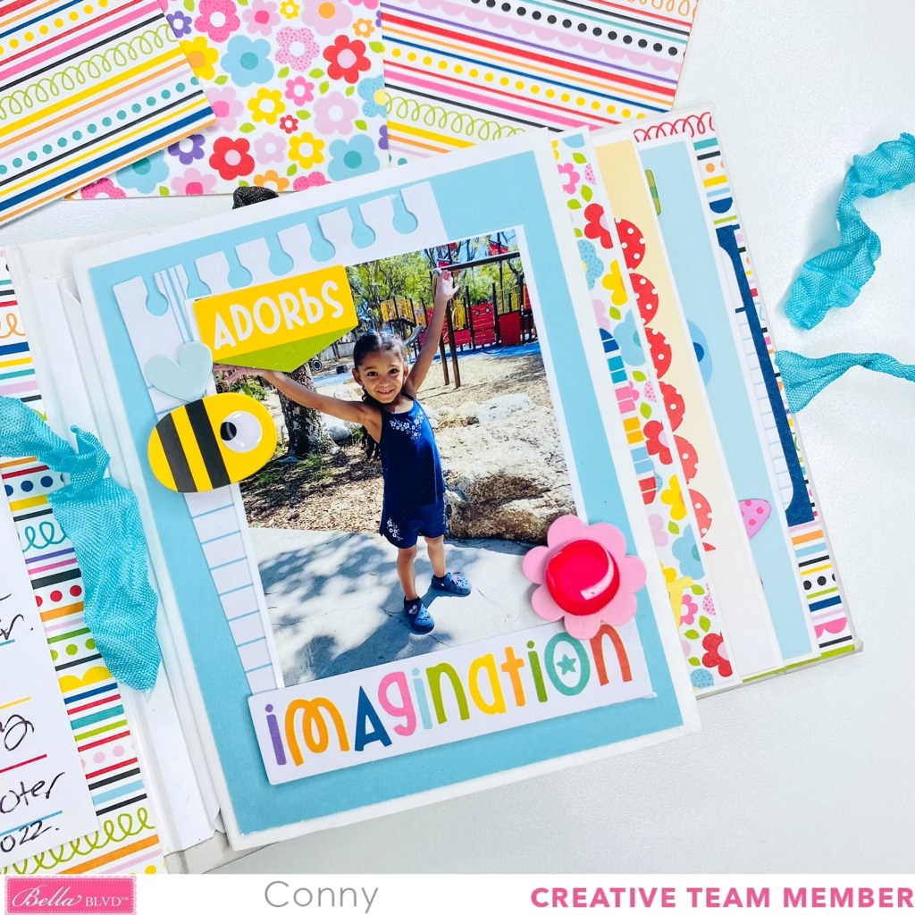 It’s Conny here today I am sharing a 4×5 chipboard mini album using Tots 2.0 Collection. It goes perfectly with the photos I took of my daughter at the Pirate Park, she was using her imagination, running around and exploring!